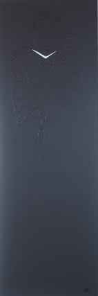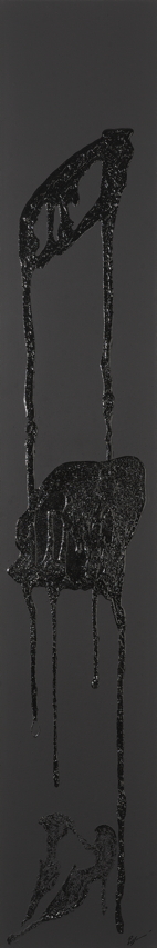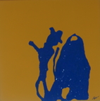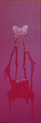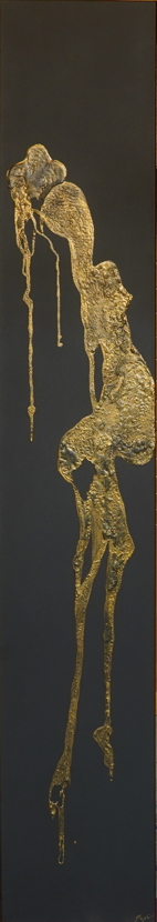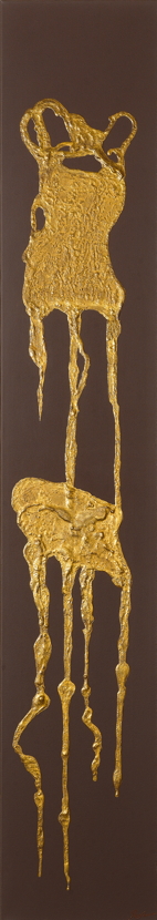 Ma démarche est d’apporter au regard une sensation d’apaisement, de silence et de sobriété en laissant apparaître des formes comme si elles étaient « suspendues », des formes au dessus du vide, un effet « aérien », suggérées comme ….des chaises… pour trouver et prendre place !… Des formes inattendues que l’on devine…. comme quand on lit dans le marc du café…. J’utilise le marc du café grec pour le relief – un clin d’œil qui me relie à mon origine grecque - et, pour le fond, de la peinture acrylique, travaillée au pinceau, en monochromie ou ton sur ton ou encore en bichromie….l’or ou l’argent, précieux dans l’art de mes origines. Couleur brillante sur les reliefs pour la notion du « clair », couleur mat pour la notion de « l’ obscur ».